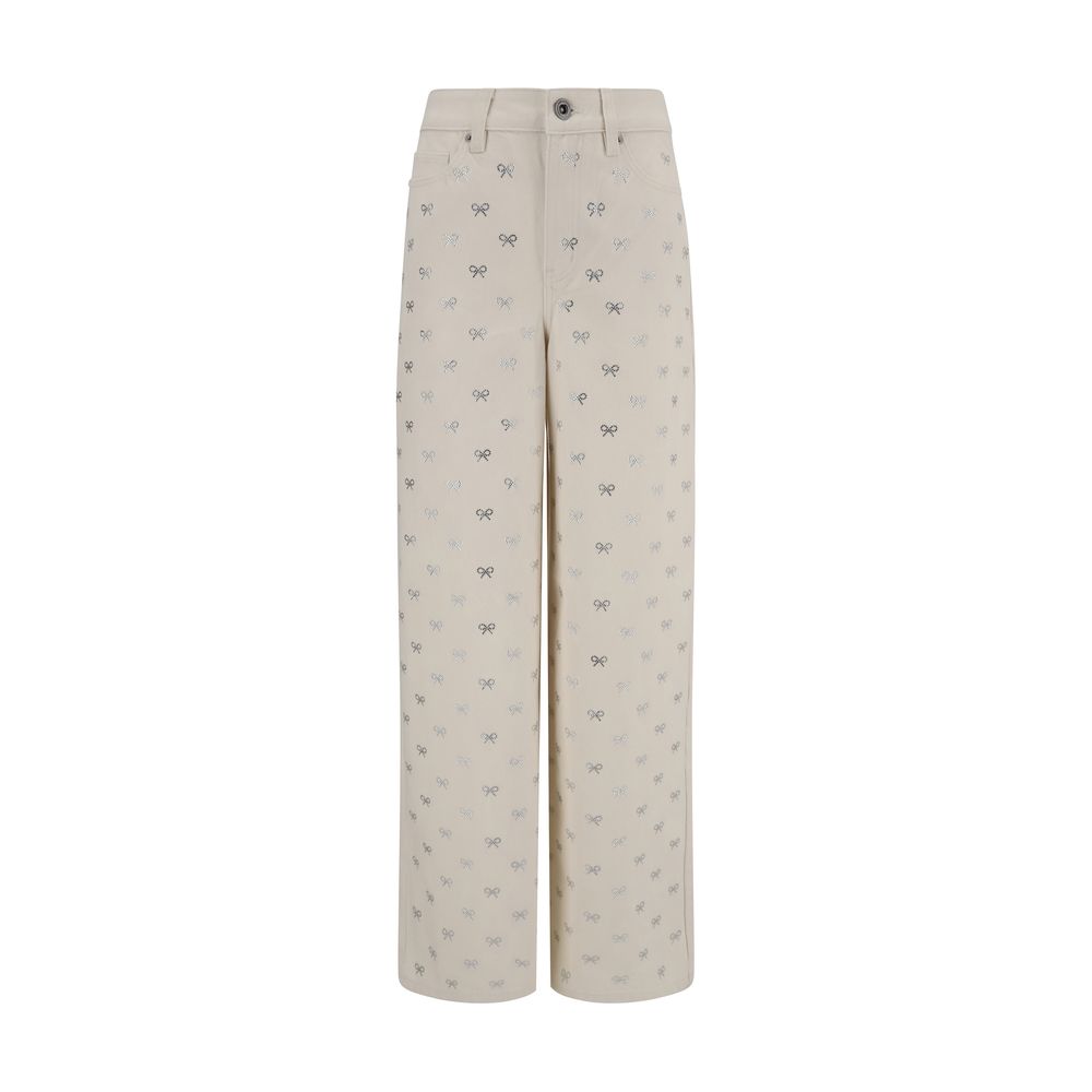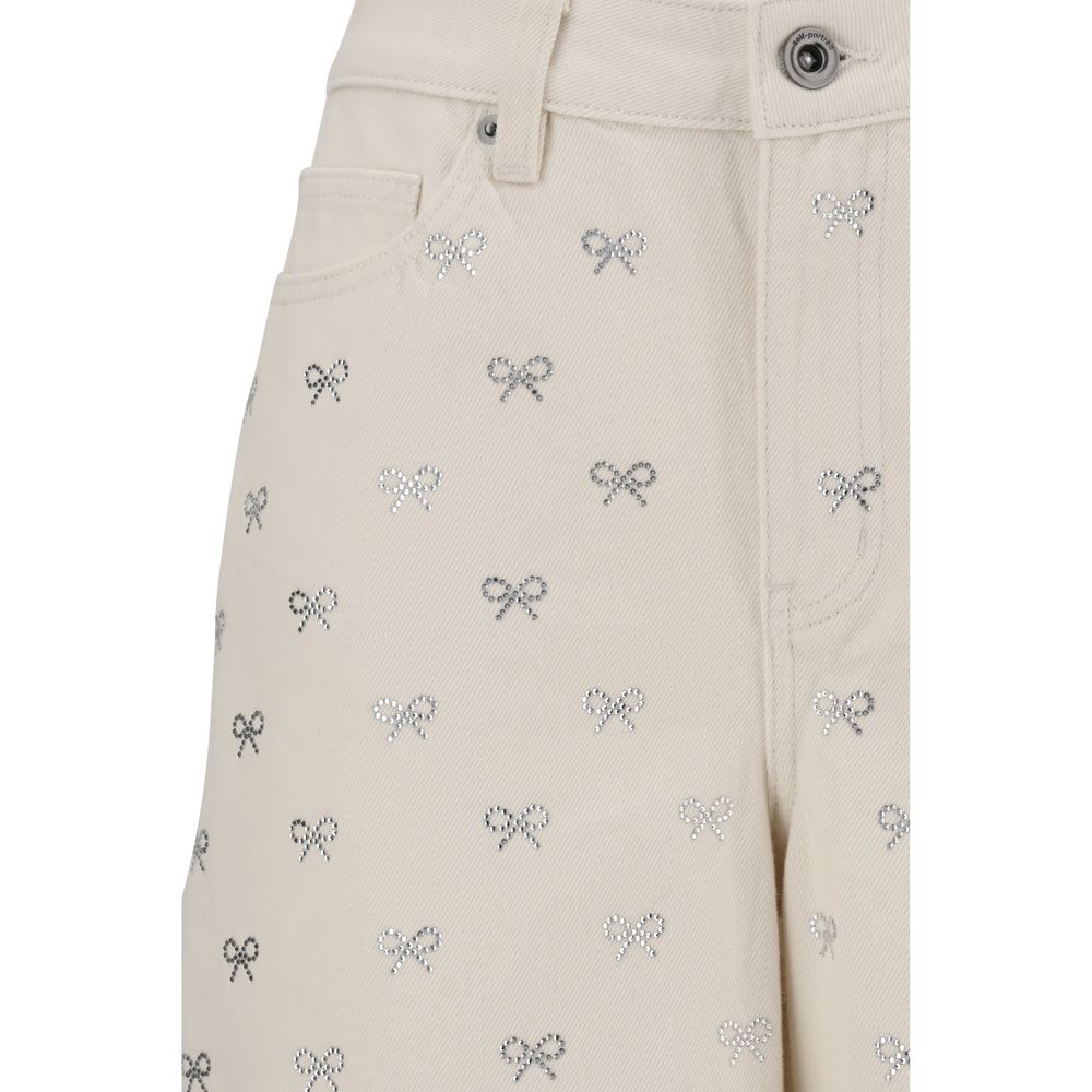 Self Portrait’s Diamante Bow Jeans reinterpret the classic wide leg style with a glamorous twist. Made in the traditional five-pocket design, they feature a zip-and-button closure, waist loops and a shower of all-over rhinestone bows for a bold and shiny style.