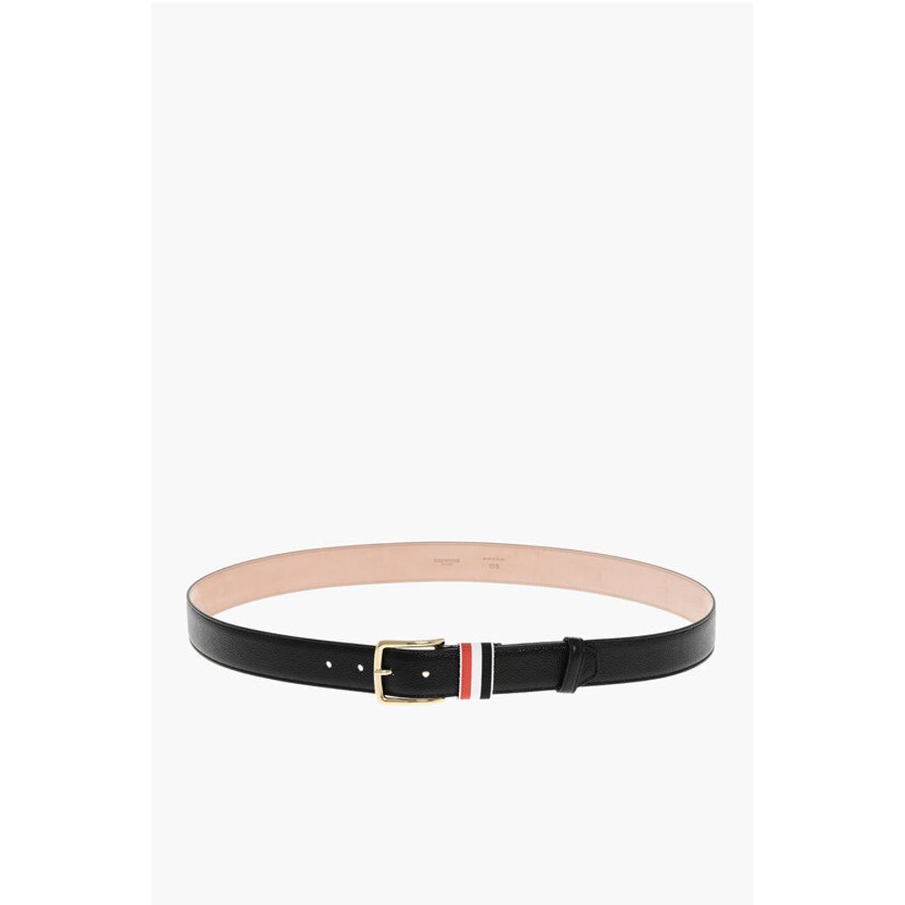 Thom Browne Grain de Poudre Leather Belt with Iconic Detail 35mm