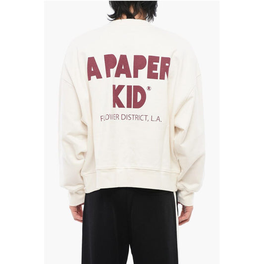 A Paper Kid Cotton Crew-neck Sweatshirt with Printed Contrasting Logo
