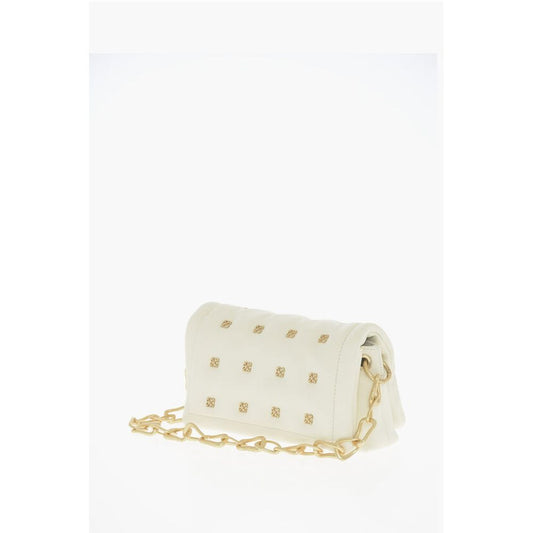 Off-White Leather Shoulder Bag with Iconic Motif in Golden Metal