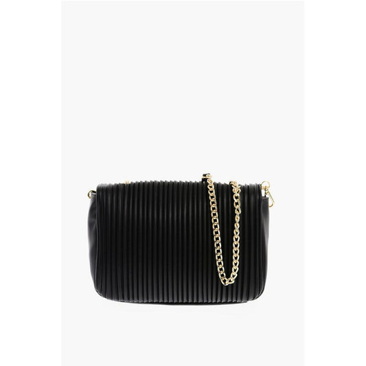 Moschino LOVE Pleated Faux Leather Shoulder Bag with Golden Chain