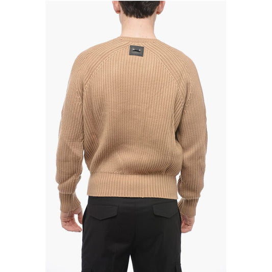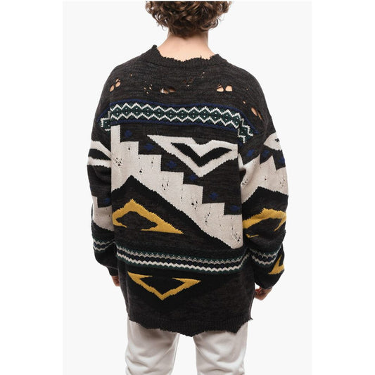 Neil Barrett Wool Blend Chunky Fit PIERCED Sweater with Raglan Sleeves