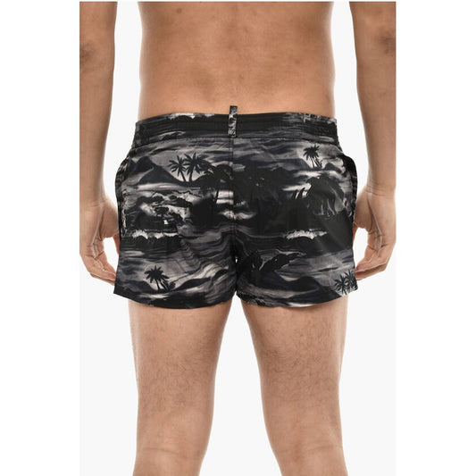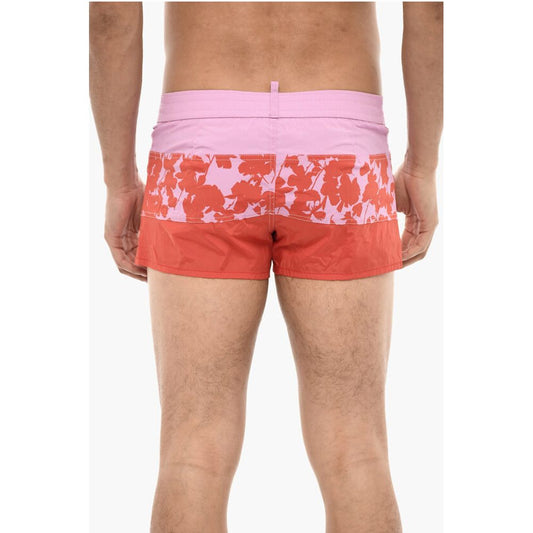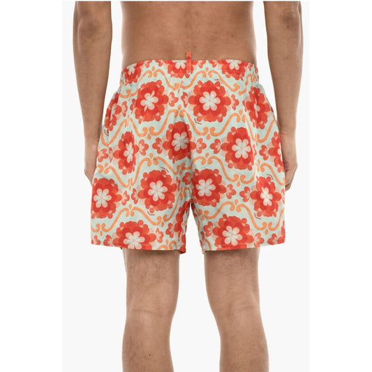 Dsquared² Extra-Long Swim Short with Floral Motif