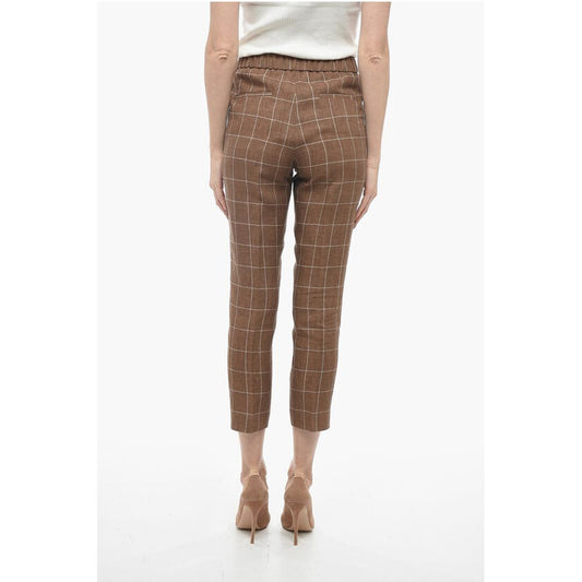 Peserico Windowpane Check Flax Pants with Elastic Waistband