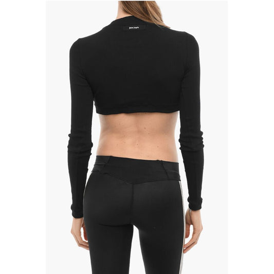 Palm Angels Long Sleeved Ribbed Cropped T-Shirt