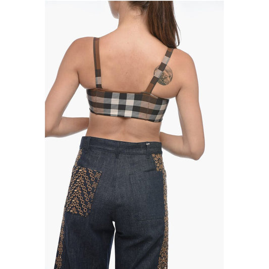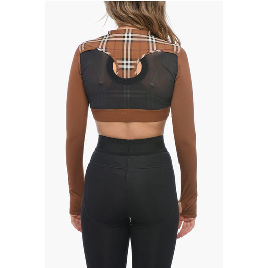 РаспродажаBurberry Tartan Crop Top with Mesh Inserts