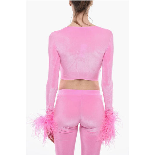 Adriana Hot Couture Bustier Chenille Bustier Top with Faux Feather on the Sleeve
