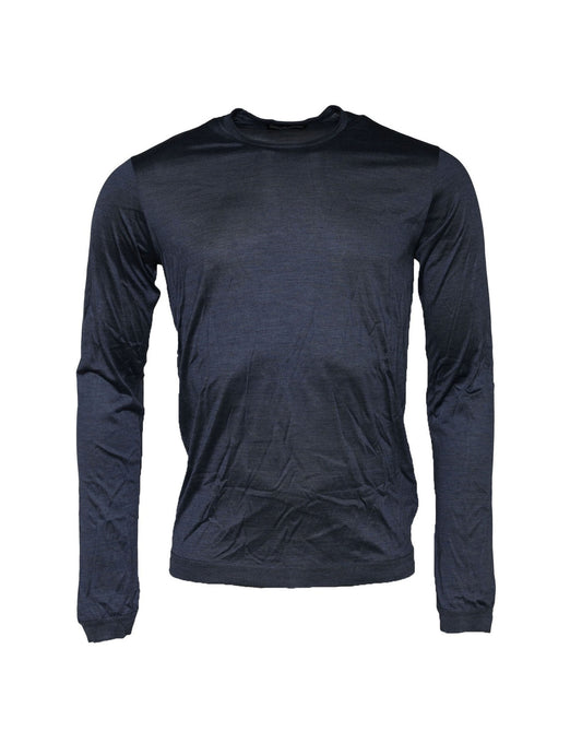 Dolce & Gabbana Dark Blue Silk Crew Neck Sweatshirt Sweater