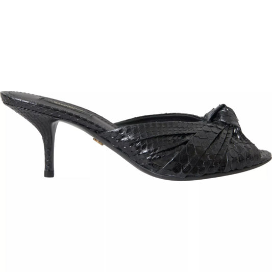 Dolce & Gabbana Black Python Leather Heels Slides Shoes