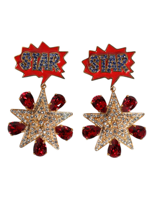 Dolce & Gabbana Gold Star-Shaped Sparkling Red Crystals Clip On Earrings