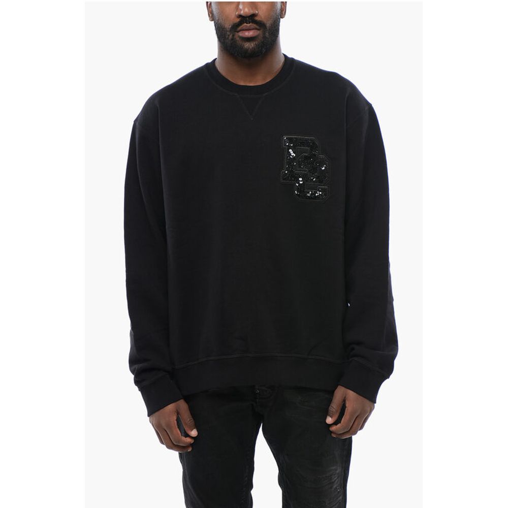 Dsquared² Brushed Cotton Crewneck Sweatshirt With Sequined Logo