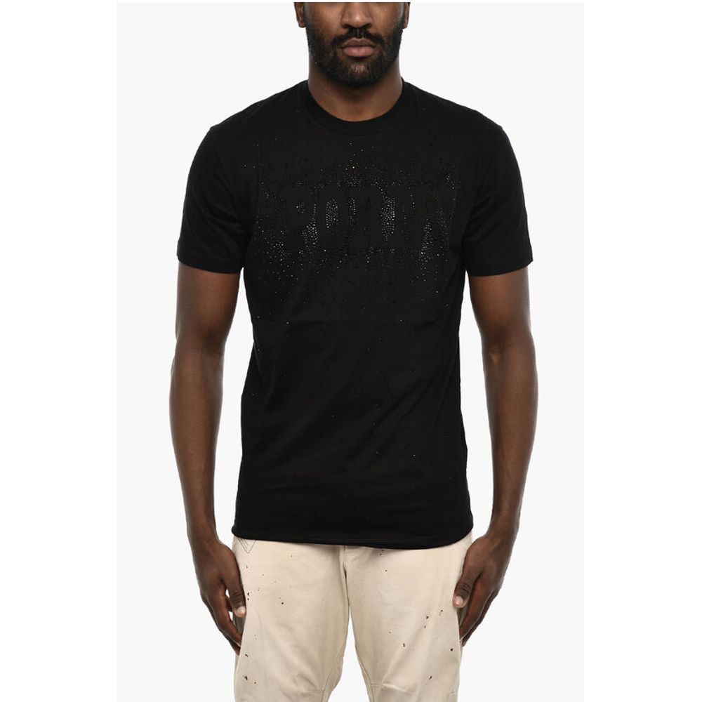 Dsquared² Solid Color Crew-neck T-shirt with Rhinestone