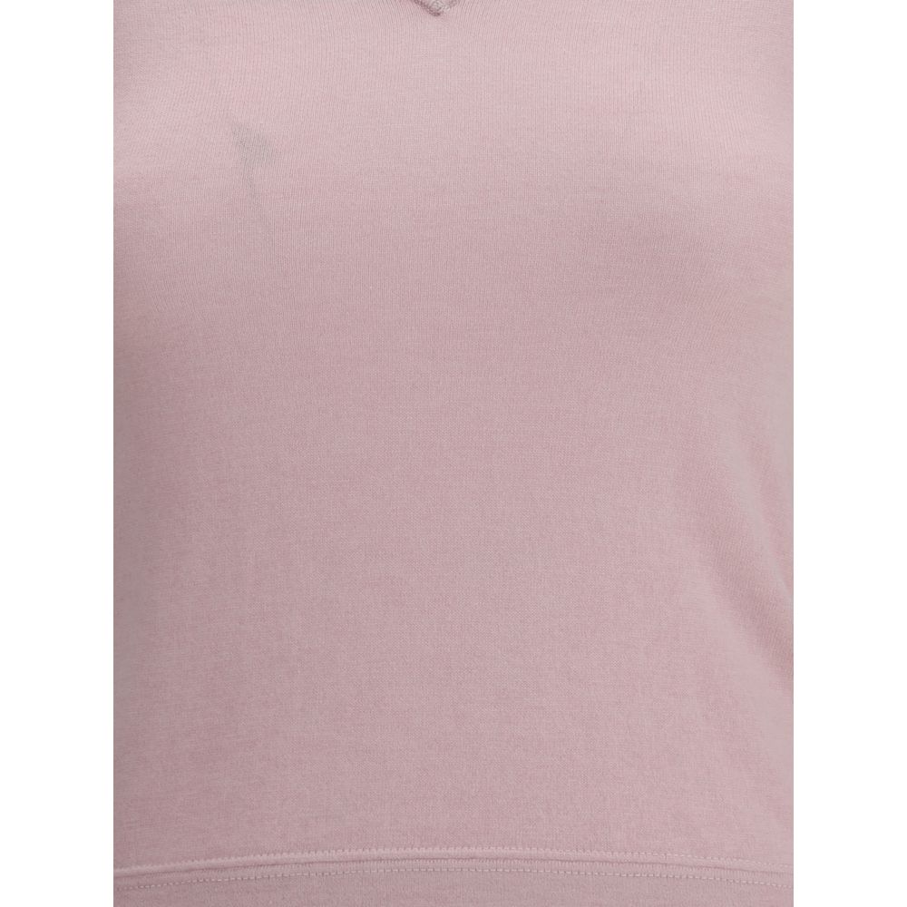 Extreme Cashmere’s knit T-Shirt is a garment with an essential and refined style. Made from a soft blend of cashmere and cotton, it features a ribbed V-neckline and a cropped cut that gives a modern, feminine touch. Perfect for casual-chic looks with comfort and quality.