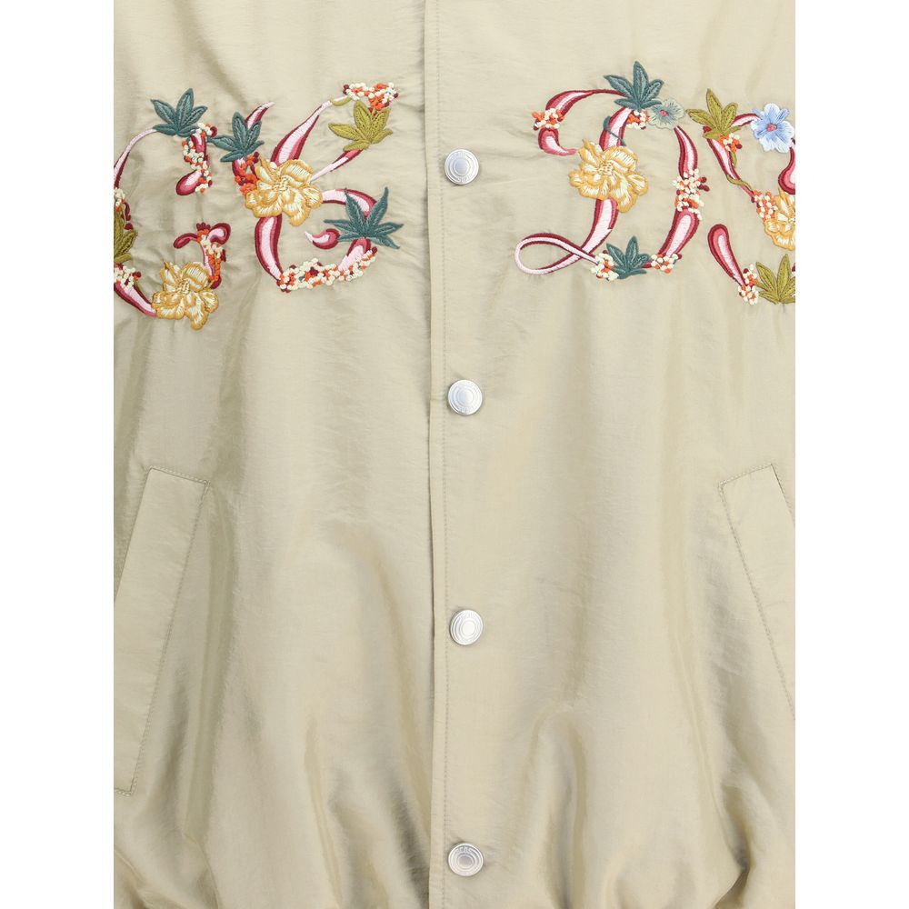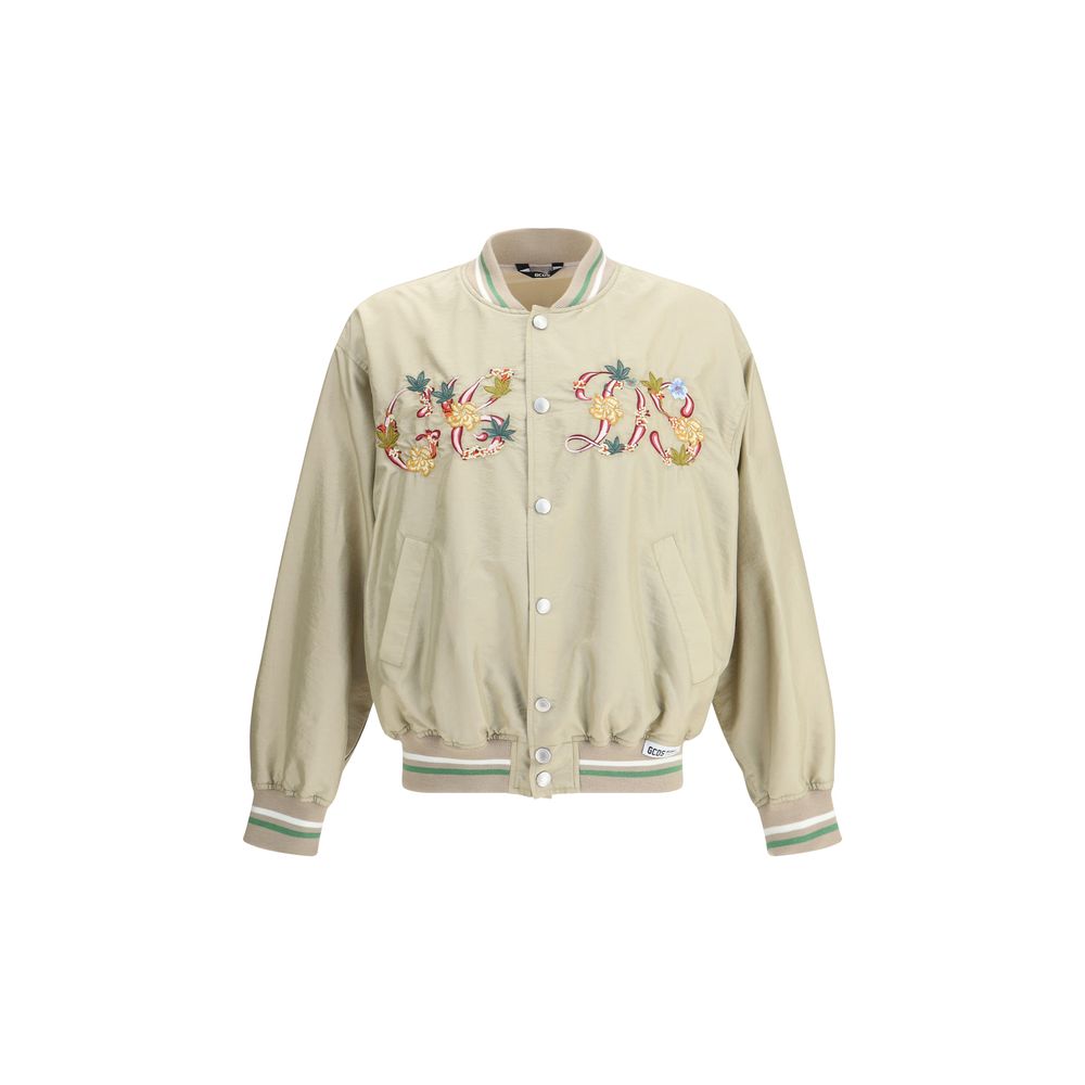 The Varsity bomber Jacket by GCDS combines a college aesthetic with contemporary and sophisticated details. Featuring a front button closure, it has ribbed cuffs and hem for a snug and comfortable fit. Two practical buttoned welt pockets are positioned on the sides for functionality and style. The distinctive detail is the iconic GCDS monogram embroidered on the chest, embellished with floral motifs, which gives the garment an original and decorative touch. A perfect mix of streetwear and craftsmanship.